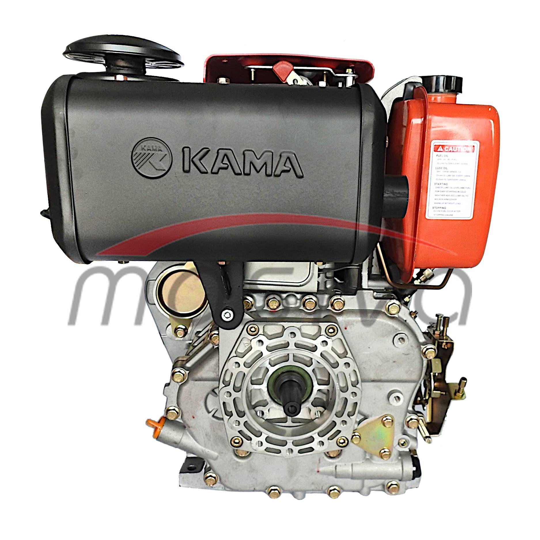 Motor Kama KM186F/E ima OHV dizajn, jedan cilindar, sustav izravnog ubrizgavanja i povratni ili električni starter.